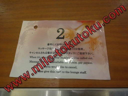 マッサージの実施時間は7時半から10時半までの午前中のみになり、先着順になります。マッサージを受けたい場合は、このような番号札を取る必要があります。