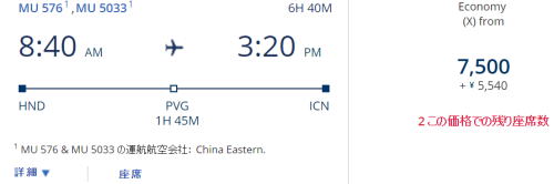 中国東方航空の上海経由・韓国行きも、直行便と同じ必要マイル数では予約できなくなりました