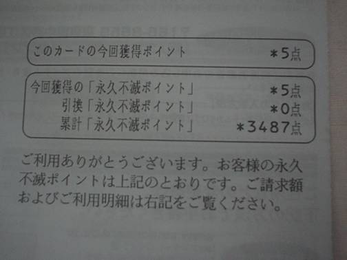 肝心なのは、母はどれくらいの永久不滅ポイントが貯まっているかですが、聞いても「知らない」ということなので、カードの明細書を見せてもらいました。