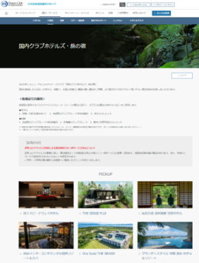 国内クラブホテルズ・旅の宿のページです。ここ経由で予約すると、上級会員並みの特典が適用されます(コールセンターでの予約も可能)。