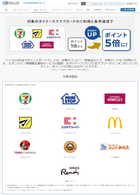 他社コンビニの一部提携クレジットカードでは、ボーナスポイントを獲得するには日付・時間帯・商品などが限定されていることがありますが、ダイナースクラブカードならそのような心配はありません。