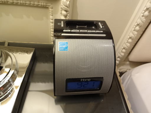 ベッド横のサイドテーブルにあった時計には、アイフォンの充電機能が付いていて便利でした。