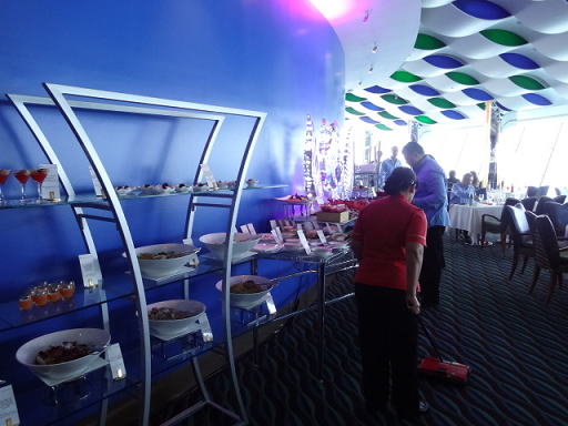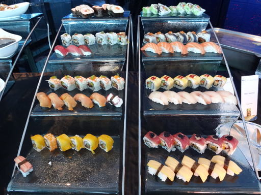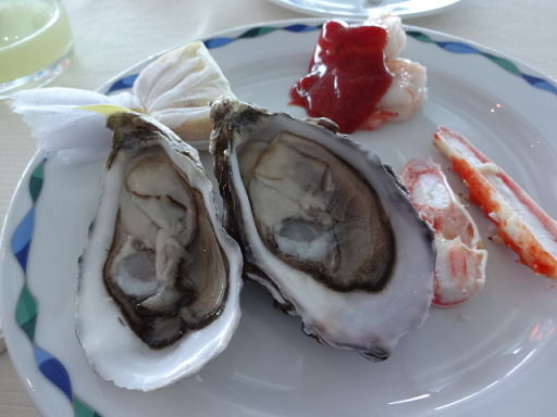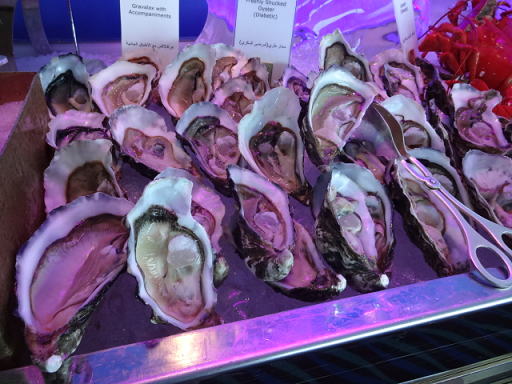 1箇所にビュッフェカウンターがまとまっているのではなく、細長くレストラン全体にカウンターが置かれている感じでした。自分のテーブルから少し離れたところに牡蠣(かき)があったりと、一度端から端まで歩いたほうがいいかもしれません。