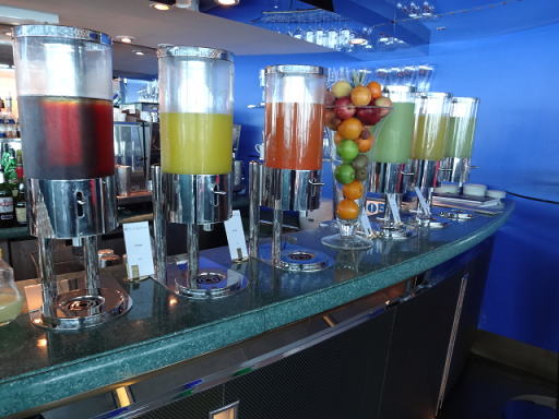 アルコール類は有料ですが、紅茶と、100%フルーツのソフトドリンクは無料でした。オレンジ、アップル、グレープフルーツなどがありました。どれも搾りたて感がありおいしかったです。