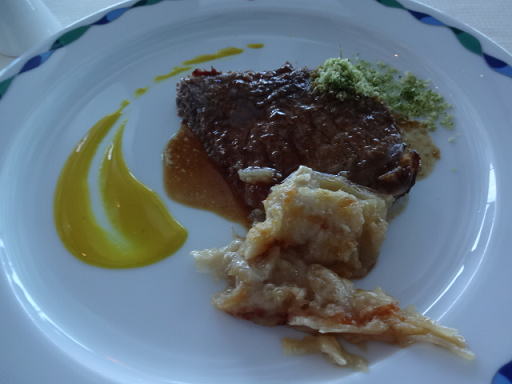 これが直接シェフからいただいたステーキです。ソースの盛り付け方も綺麗です。