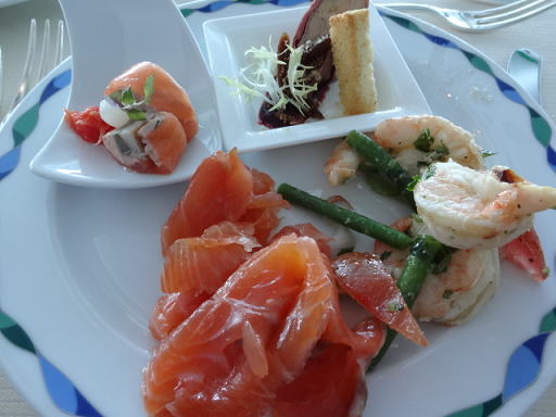 スモークサーモン、海老などです。