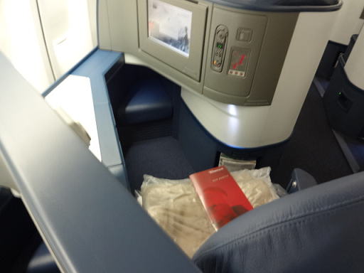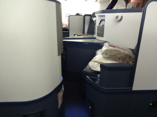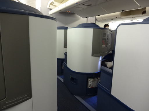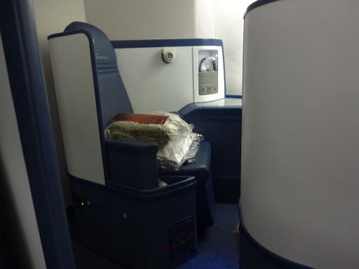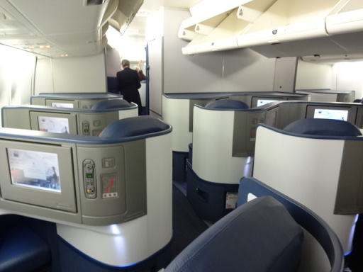 なお、今回乗ったボーイング747は2階建てですが、2階部分のビジネスクラスだと配列は1〜1になり、人が少ない分、落ち着いた感じがあります。帰りは2階部分の座席にしてみました。
