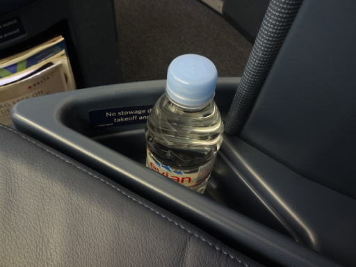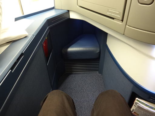 足元の様子です。先に見える足置きスペースまではちょっと遠すぎだったので、離陸前から足を置いてリラックスというわけにはいきませんでした。
