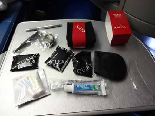アメニティセットです。なんと、旅行かばんブランドとして有名なTumiのケースでした。余談ですが、帰国後母に渡したら、「やだー、Tumiの小物入れなんていいわー。これ使う」と取られてしまいました(笑)。