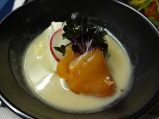 到着前に出された軽食です。これは洋食メニューでメインはキッシュになります。本当は和食の鶏肉にしたかったのですが、品切れということで残念でした。