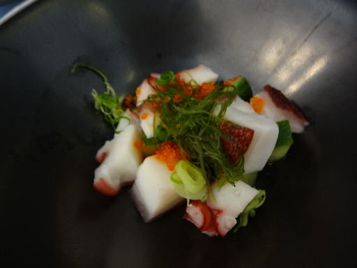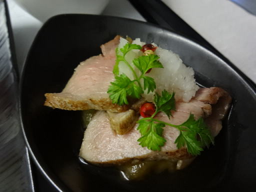 ビジネスクラスらしく、マグロの刺身が出てきました。