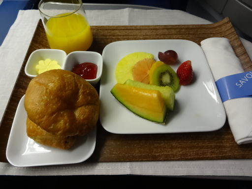 デザートですが、客室乗務員がトレーで、ケーキ、チーズ、フルーツなどを運んできて、そこから好きなものをチョイスするスタイルでした。