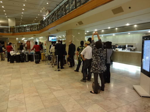 約10分でホテルに着きました。私はバスの前方に座り、バスを降りてフロントへ早歩きで行ったため、すぐにチェックインすることができました。チェックイン後、フロントはバスで着いたばかりの乗客の列が出来ていました。