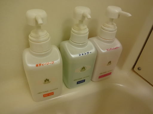 シャンプー、コンディショナー、ボディーソープです。