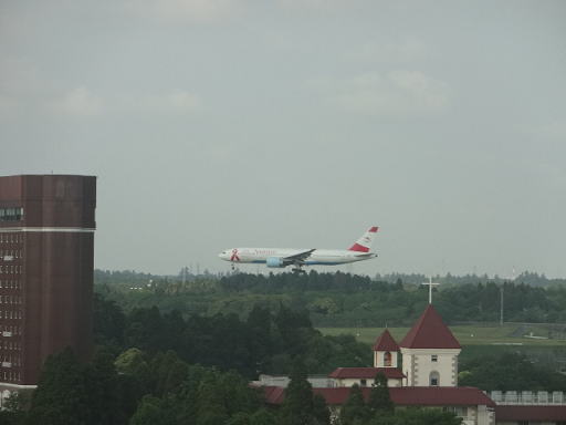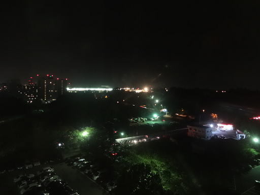 外の様子です。夜なのでわかりにくいですが、遠くに見える明るい部分が成田空港です。そんなに遠くないのがわかります。