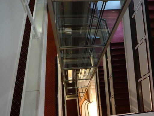 1階まで吹き抜けになっていて、吹き抜け部分にエレベーターがあり、エレベーターの壁は透明ガラスになっているなど、外観と比べて、内部はモダンな空間になっていました。