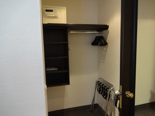 クローゼットです。クローゼットの上に金庫があったのですが、金庫の位置が高すぎて、椅子に乗らないと届きませんでした。