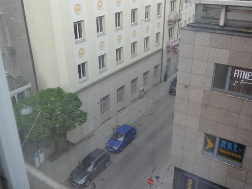外の様子です。チェックイン時に、ミュンヘン中央駅側ではない部屋をリクエストすると、このような裏路地に面する部屋にしてくれました。
