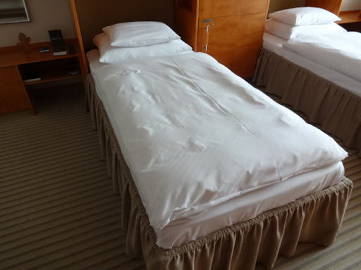 ベッドです。サイズは日本のシングルベッドと同じなので小さいほうです。