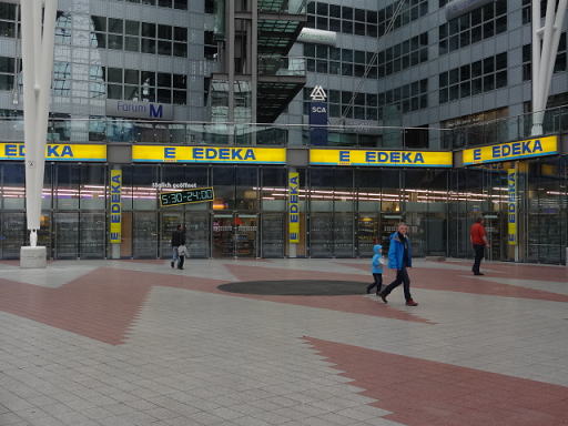 「E EDEKA」というスーパーマーケットがありました。営業時間は朝5時30分から24時までです(2013年6月当時)。お惣菜コーナーには(おいしくないですが)お寿司も売っていました。