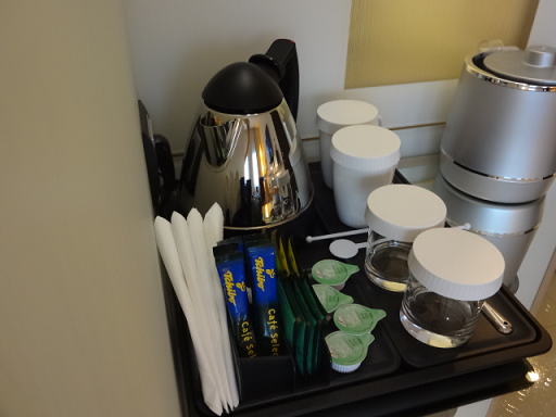 湯沸かし器とグラス・カップ類、インスタントコーヒー類です。ここにナプキンまで置いてあるのには驚きました。