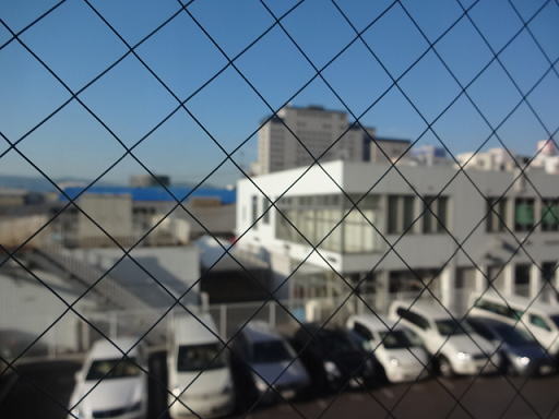 窓から見た外の様子です。ホテルの駐車場が見えただけでした。遠くには前日に泊まったロワジールホテル函館のビルが見えました。