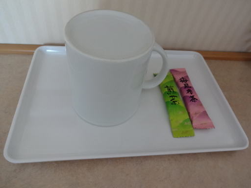 カップと、粉末状の緑茶と昆布茶がありました。
