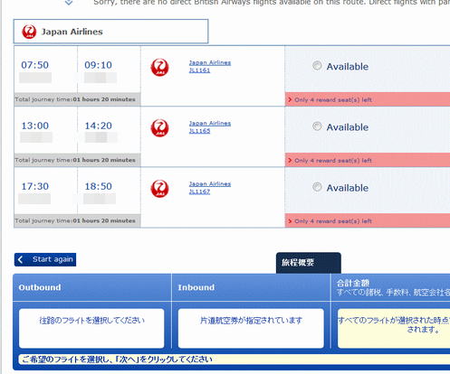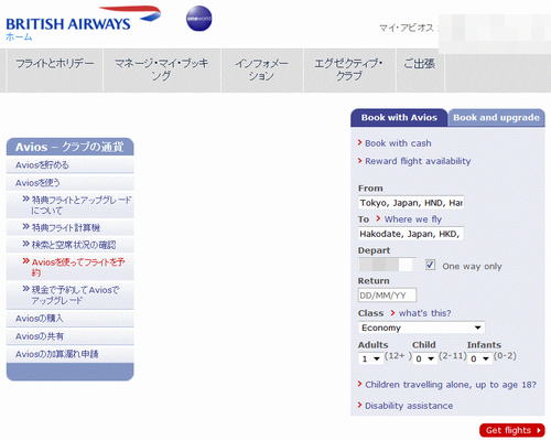 以下、長くなりますが、ブリティッシュエアウェイズの公式サイトから、Aviosポイントを使って、JAL国内線の特典航空券を予約した時の様子を、画像と共にレポートします。