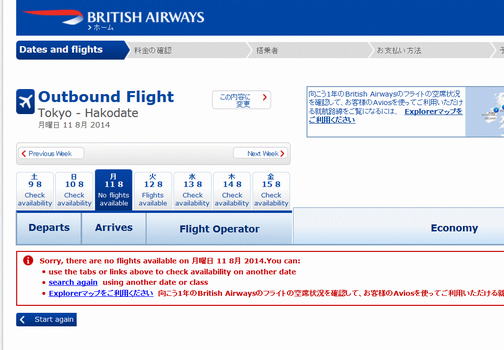 there are no flights available on 選択した日付」と表示されます。