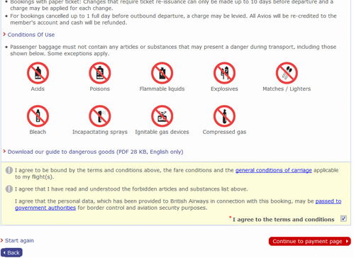 しかし、「I agree to the terms and conditons」(内容を理解しました)という箇所をチェックしないと先に進めないので、ここにチェックをいれます。そして、下の「Continue to payment page」をクリックします。