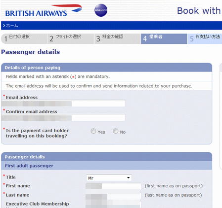 コールセンター予約手数料を避けるため、ブリティッシュエアウェイズの公式サイト上で予約。一部英語表記になるなど、少し不便な箇所もあり