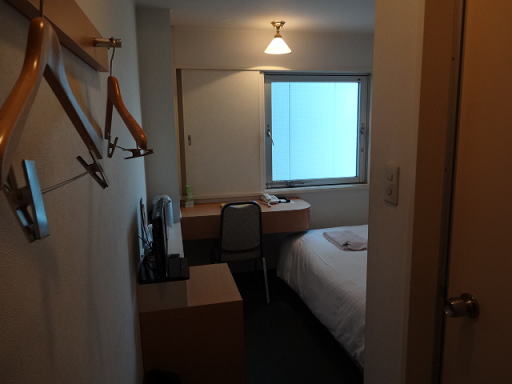 部屋に着きました。狭くて有名なアパホテルの部屋より、少しだけ広い感じでしょうか。