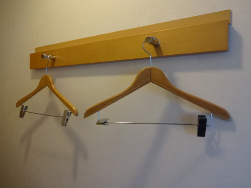 クローゼットはなく、ハンガーは直接壁にかけるタイプです。