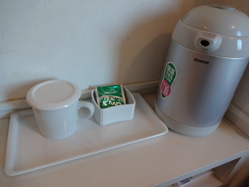 湯沸かし器、カップ、お茶のティーバッグがありました。
