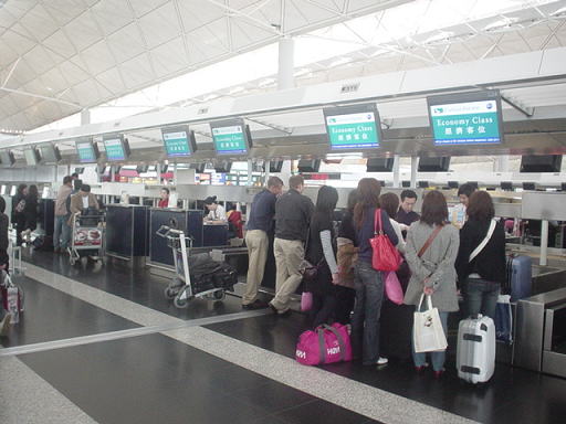 時間帯にもよると思いますが、香港をハブとして世界中に乗り入れているキャセイパシフィック航空だけあって、待ち列の中にも日本人をはじめ、東南アジア系、ヨーロッパ系、中東系など、さまざまな国からの乗客がいました。