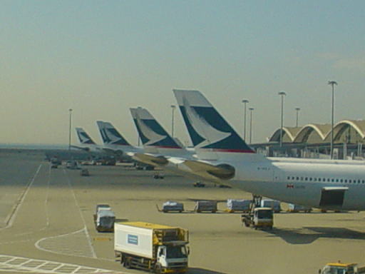 見てください。キャセイパシフィック航空の飛行機が5機も並んでいます。この光景を見たとき、うわー自分は今本当に香港にいるんだなぁーと、まるで飛行機オタクのように感動してしまいました。