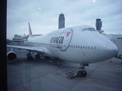 空港ラウンジでくつろいでいると、自分のノースウェスト航空1便香港行きの搭乗手続きが開始、というアナウンスが入ったので、さっそくゲートに向かいました。
