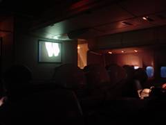 離着陸時に機内の電気が消え真っ暗になるのは、今まで何回も経験したことがあります。でも、機内食の時間になっても、機内はずっと暗いままで、離陸から着陸まで暗かったフライトは今回が初めてでした。