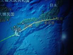 エアショー(航空飛行マップ)の写真です。成田を離陸後、名古屋、大阪、鹿児島の上空を飛んでいきました。この後は那覇、台北付近の上空を通過していきました。
