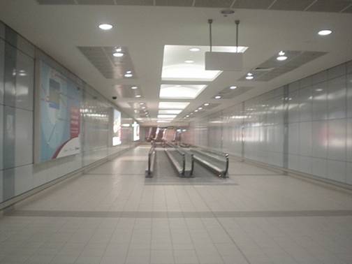 空港の駅は地下にあるので、地上へ登っていくと、各ターミナルへの道が分かれています。