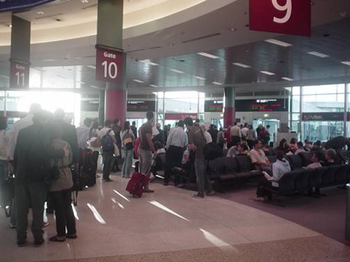 搭乗手続きが始まりました。このように搭乗ゲート付近はかなり混雑していました。