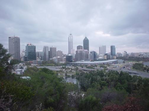 そして、これがキングスパークからのパース中心部の景色です。ちなみに、これは日没前の様子です。