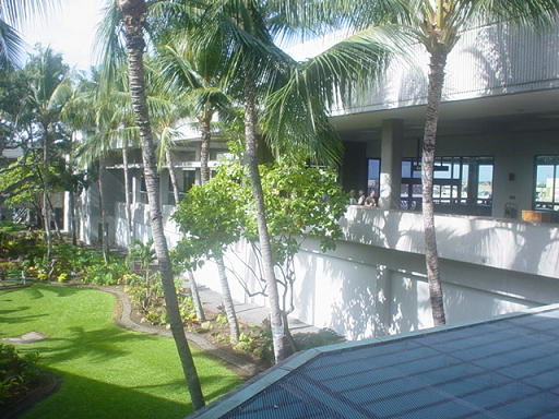 途中、このように外へオープンになっている通路がありました。ヤシの木が空港内で見れるとは、やはりハワイに来たことを感じさせてくれます。