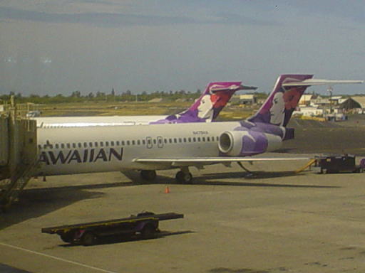 ハブらしく、ハワイアン航空の機体が並んでいました。ハワイアン航空が並んでいるのを見るのは今回が初めてだったので、かなり興奮してしまいました。