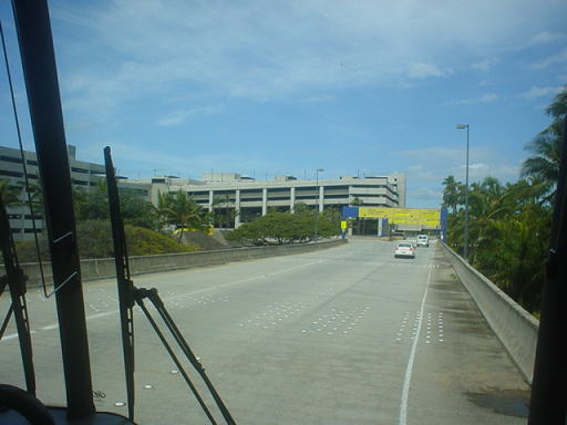 ホテルから空港まではシャトルバスで向かいました。空港までの途中、5箇所くらいのホテルに寄ったので、合計で40〜50分くらいかかりました。高速を降りると、このように空港ターミナルが見えてきました。