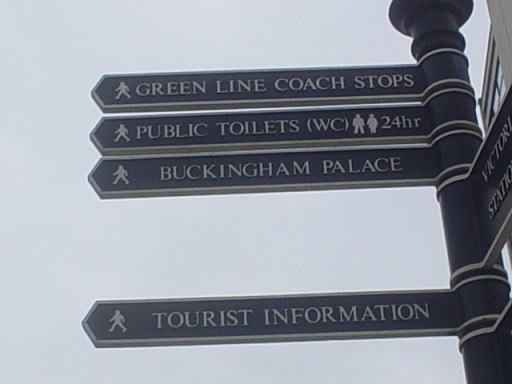 ヴィクトリア駅付近には、このように主要目的地への方向が記されています。地図を見るのが面倒くさかったので、これに従って歩いて行きました。