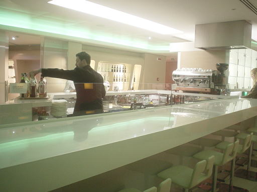 ラウンジの中心に、このような有人のバーがあります。アルコール類などは直接注文します。