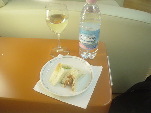 私は水、白ワイン、サンドイッチをいただきました。