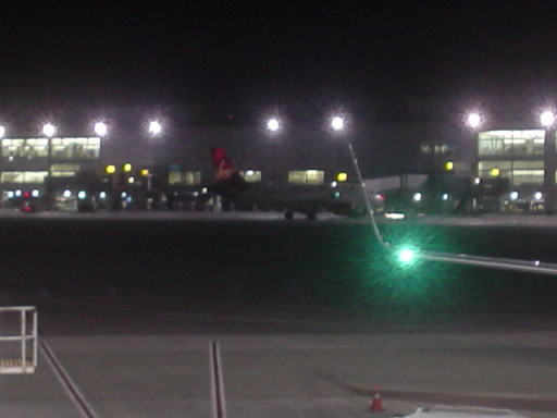 サンフランシスコ〜ラスベガス間には、大きな街がないようで、このように、外はずっと真っ暗で、翼の先で光っているライトしか見えませんでした。