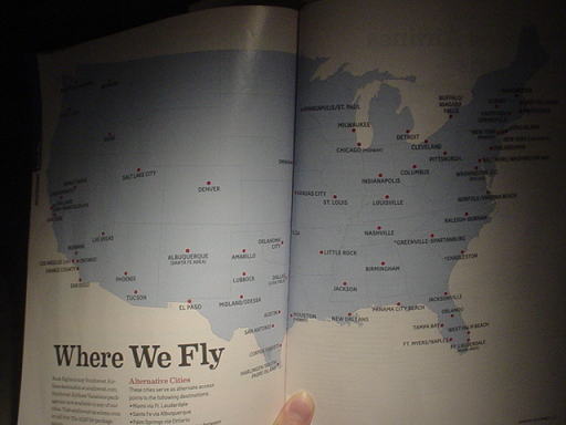 サウスウエストの就航地一覧です。このように、たくさんの主要都市に飛んでいます。